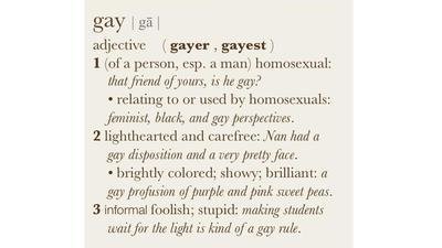 Remove the definition of 'Gay' meaning foolish or stupid from the iPhone's dictionary.