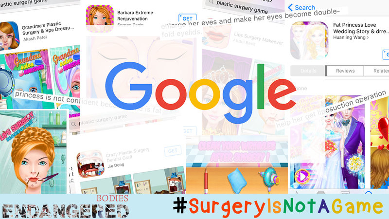 The team at Endangered Bodies are excited about this as change is possible. But Google are yet to remove harmful cosmetic surgery games targeting children and institute a policy. We have been closely monitoring them.