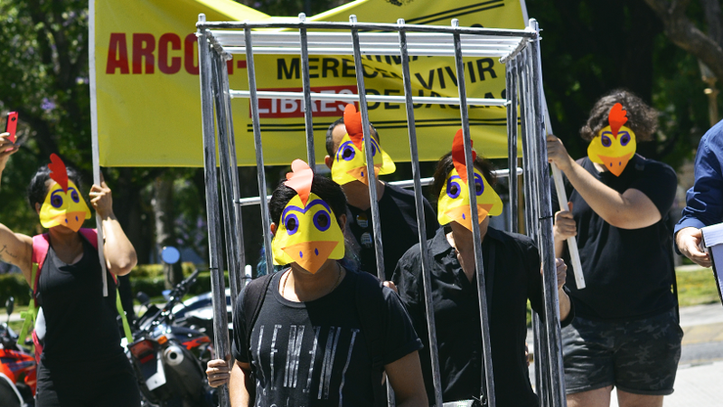Nuestra protesta fue visibilizada por los grandes medios y reportada por la Agencia Nacional de Noticias (Telam) y por el diario porteño 'Extra'. Pero, desgraciadamente, Arcor continúa huyendo de su responsabilidad. Una representante de Arcor vino a recibirnos, pero no prometió nada en relación a un posible compromiso para que los huevos de gallinas torturadas en jaulas no sean usados en los productos de la empresa.