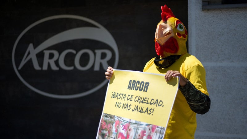 En el texto, Arcor no dice absolutamente nada sobre la crueldad de millones de aves en jaulas que puede estar contenida en sus productos como panes dulces, mayonesas, galletas y turrones.