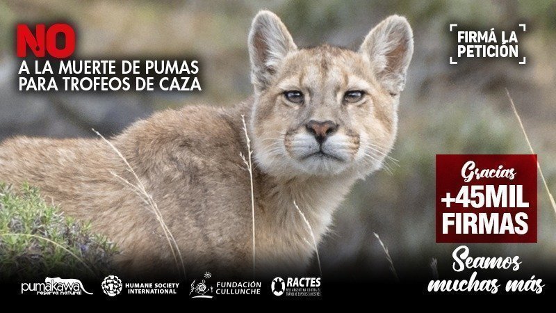 Pasaron 2 semanas y más de 45.000 personas firmaron el Petitorio para decir “NO a la caza de pumas, Trofeos de sangre”.