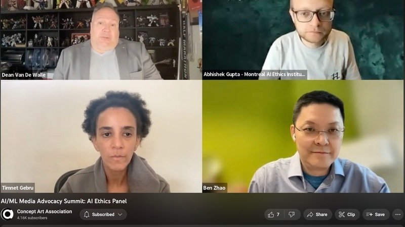 Check out the Concept Art Association: AI/ML Media Advocacy Summit video's from today. Fantastic panel of advocates and experts speaking to the ethics and concerns as it relates to AI/ML in the art space.