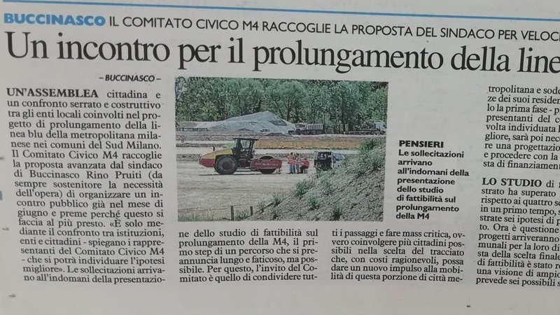 A pochi giorni dalla presentazione dello studio di fattibilità, il Comitato Civico M4 si dice favorevole ad organizzare l'assemblea pubblica proposta da Rino Pruiti (sindaco di Buccinasco).