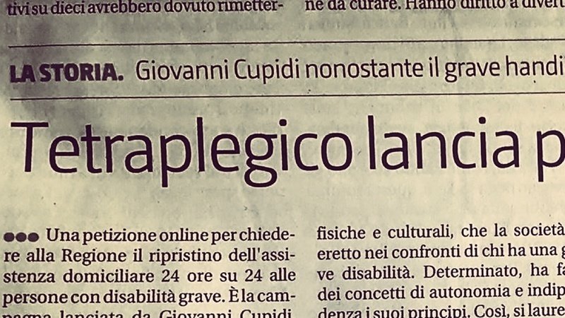 Petition updateAssistenza domiciliare H24 per Giovanni CupidiLa Petizione è in Parlamento! Oggi sul Giornale di Sicilia!