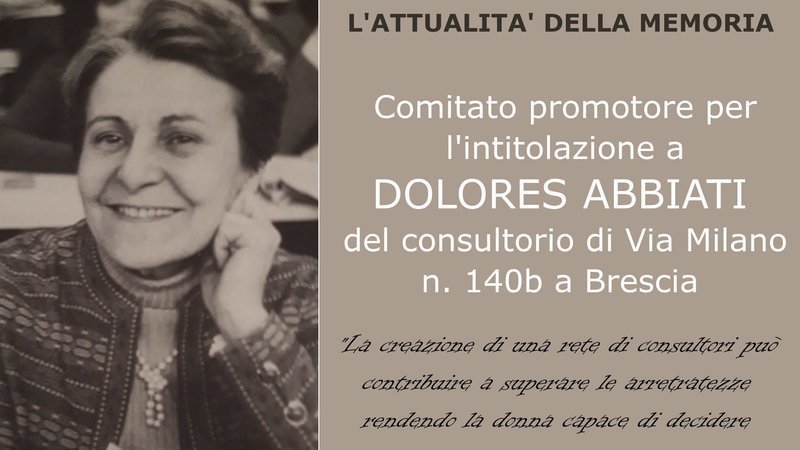 Intitolazione a Dolores Abbiati del consultorio di Via Milano n. 140b a Brescia