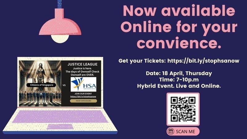 Join us in person or online to learn about our ongoing legal actions against HSA and explore how you can support our mission to restore equality and justice in Singapore.
