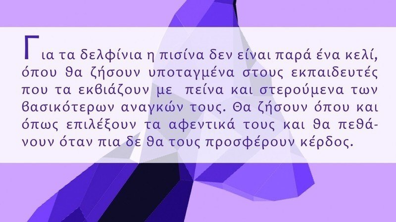 Τhe pool is nothing but a cage to dolphins where they will live submissive to their trainers who threaten the dolphins with hunger and ignore their basic needs.