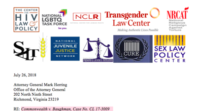 We are legal and criminal justice professionals, scholars, and leaders representing national and state organizations and communities, including a number of Virginia residents and voters. The concern we raise here is the OAG’s aggressive application of an already-flawed statute against a young gay man, Galen Baughman, essentially for juvenile offenses revived now on a technical probation violation.