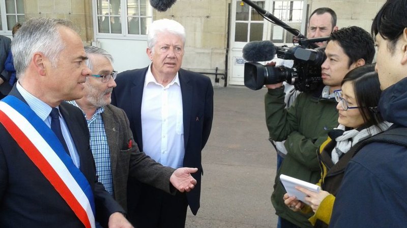 Les cinq journalistes japonais se sont activés en gare de Vittel, caméra au poing afin de saisir la moindre réaction des 60 Adhérents, Usagers, Citoyens et Elus rassemblés pour manifester et débattre d’un problème récurrent depuis plus de cinq ans :