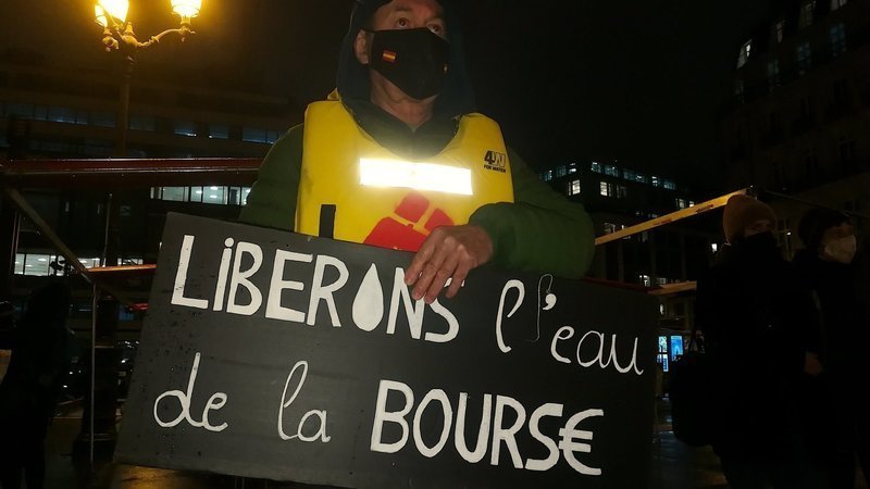 A l'appel de l'Agora des Habitants de la Terre, plusieurs centaines de personnes se sont réunies à Paris, à Bruxelles, à Montréal et à Milan, pour libérer l'eau de la Bourse.