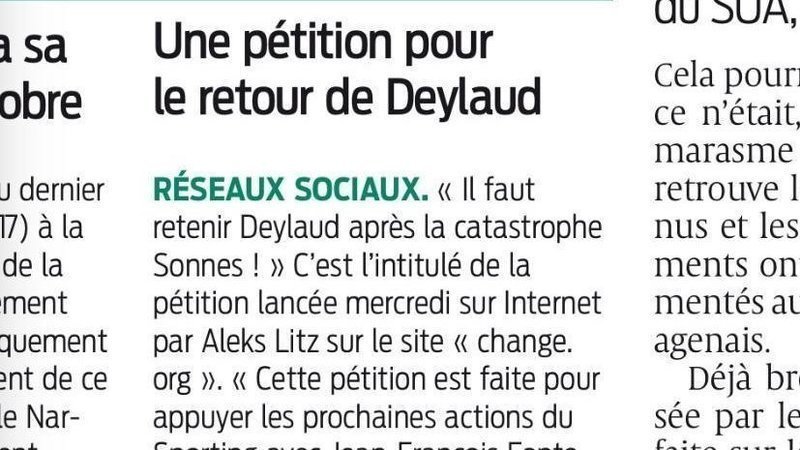 Une signature c'est gratuit, et ca ne vous engage en rien, si ce n'est appuyer la volonté de revoir Christophe Deylaud en tant que Manager du SUA.