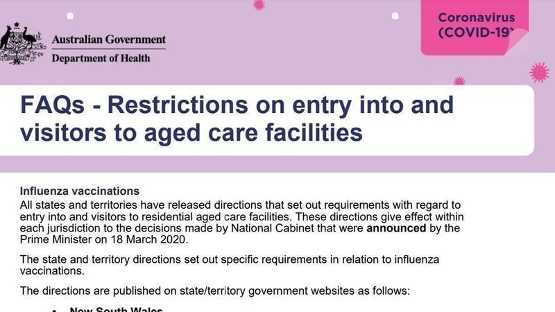 Anyone who has not been vaccinated against influenza by May 1st will be banned from entering any, and all residential aged care facilities.