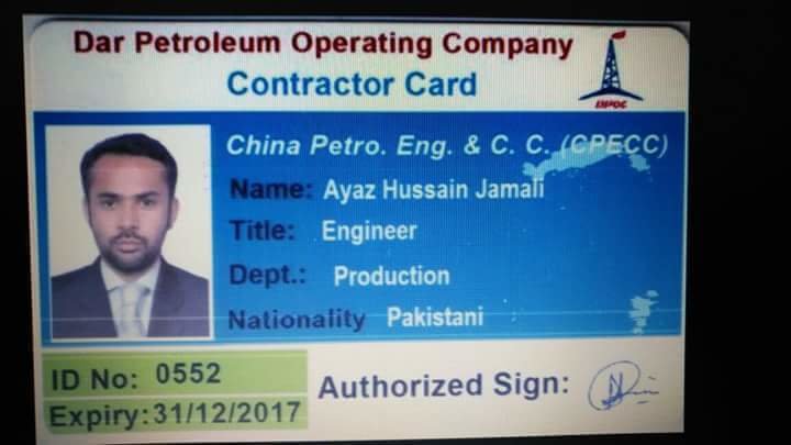 A Pakistani Engineer Mr Ayaz Hussain Jamali Works in China petroleum engineering construction corporation "CPECC" Joint venture with South Dar petroleum operating compnay "DPOC". He has been kidnapped by Anti State militant groups of South Sudan in Juba Town. Neither Pakistani authorities nor any other humanitarian organisation has taken this matter seriously. We appeal amnesty international, Government of Pakistan, Federal Investigation Agency of Pakistan and other human rights organisations of the world to ensure the safe recovery of this young pakistani engineer belonging to district Badin of Sindh, Pakistan.