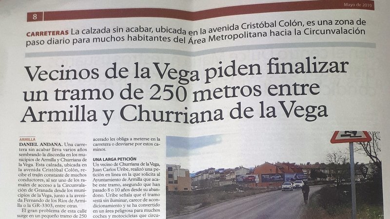 Petition updateARREGLO VIAL ENTRE ARMILLA Y CHURRIANA DE LA VEGA EN GRANADAPublicación en periódico Ideal Vega Sur