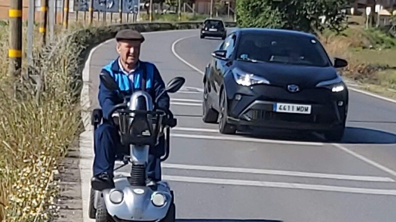 Buenos días de nuevo. Esta fotografía está tomada esta misma mañana. Ahí podéis ver la peligrosidad de este tramo. He tenido ocasión de hablar con este señor me ha confirmado que es vecino de ARMILLA y que antes podía pasar con su carro eléctrico por el camino que hay junto al vial asfaltado pero que de un tiempo a esta parte ya no puede por la dificultad del terreno y se tiene que jugar la vida de esta manera.