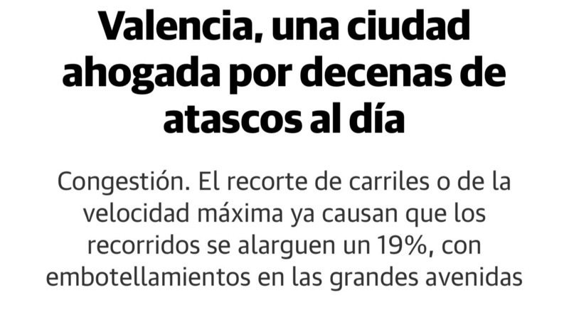 Aumentan los trayectos, los atascos, los consumos, la contaminación y nos venden todo lo contrario, no pueden hacer otra cosa, jamás lo reconocerán sería tirarse piedras contra su tejado, como tampoco reconocerán que la ciudad está sucia, dejada, llena de ratas e insegura al destinar la práctica totalidad del presupuesto en la movilidad dejando el resto de lado. Qué pena cómo están dejando Valencia.