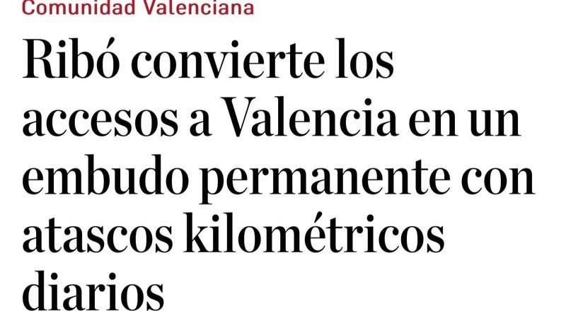 En lo que corresponde a los accesos a Valencia, las mismas fuentes critican que el Equipo de Gobierno de Compromís y PSPV-PSOErealiza sus actuaciones sobre el tráfico «sin contemplar el área metropolitana» de la ciudad, con lo que se llega a que la capital levantina se haya convertido «en una ciudad atascada e incómoda».