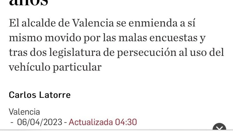 El alcalde de Valencia se enmienda a sí mismo movido por las malas encuestas y tras dos legislatura de persecución al uso del vehículo particular