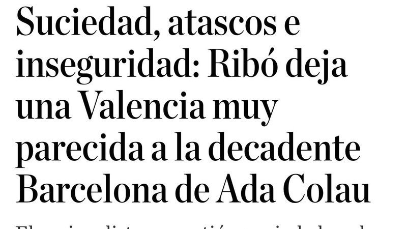 Como alumno aventajado de la catalana, Ribóestá transitando por la misma senda, añadiendo a su legado una Valencia caracterizada por unos hasta ahora desconocidos niveles de inseguridad, un tráfico agotador e insoportable y un grado de suciedad tan grave que hay innumerables plagas de ratas y cucarachas.