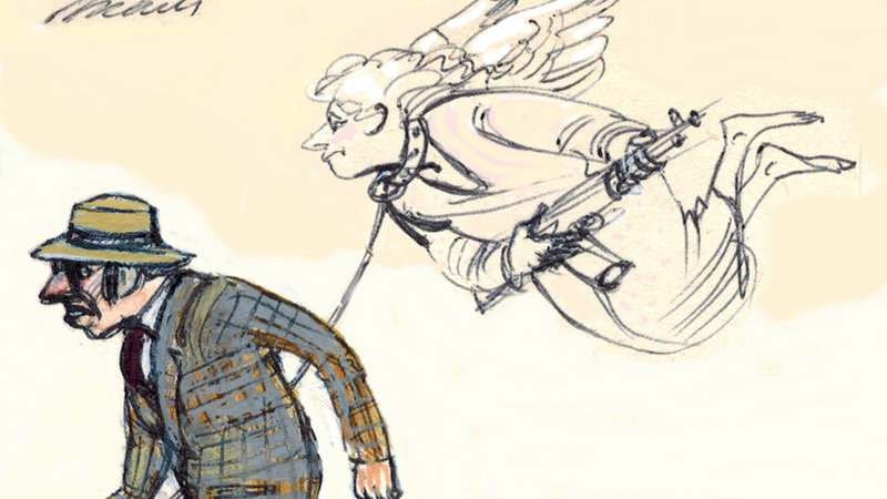 Könnte es nicht sein, dass irgend eine besonders reiche Firma mit viel Geld das Gebäude gekauft hat und die Administration als zwangsverpflichteten Schutzengel nutzt? Dann wäre es ein als Engel verkleideter Teufel, nicht wahr?