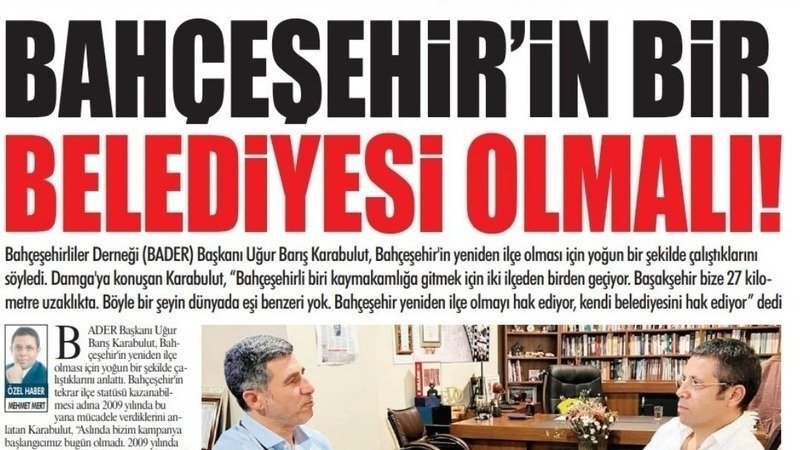 Röportaj Linki ;https://www.gazetedamga.com.tr/bahcesehir-ilce-olmali