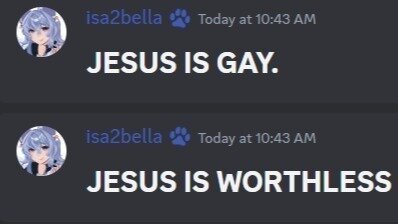 she still says Jesus hate messages on Discord...
