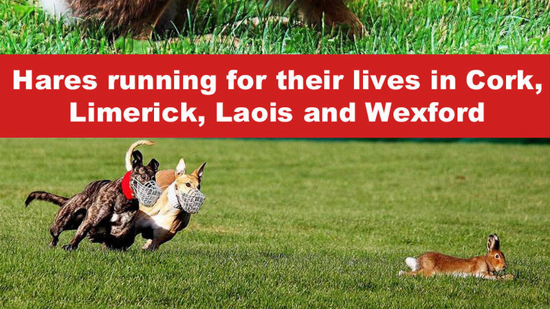 Ireland's shameful coursing season continues TODAY, TOMORROW AND OVER THE WEEKEND, with hundreds of hares being used as live lures for dogs to chase in Glanworth (Cork), Newcastlewest (Limerick), Rathdowney (Laois) and Gorey (Wexford).