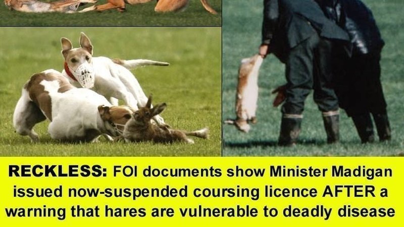 A licence to net hares for cruel coursing was issued by the Minister for Arts and Heritage Josepha Madigan despite the identification of the deadly Rabbit Haemorrhagic Disease (RHD) in wild rabbits for the first time in Ireland and warnings that Irish Hares were vulnerable to the deadly disease.