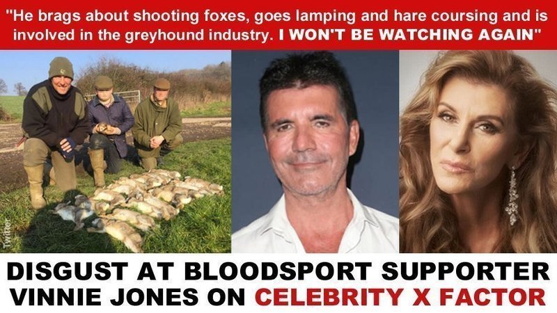 Reacting to the appearance of Jones on the show, Eurovision Song Contest star Linda Martin tweeted: “I’m appalled to see Vinnie Jones on #XFactor. [He] brags about shooting 100 foxes, goes lamping and hare coursing and is involved in the greyhound industry. I won’t be watching again #SimonCowell.”