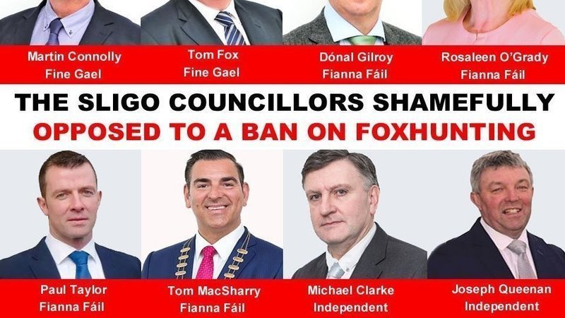 Complain to the Sligo Councillors who voted against the “Ban Foxhunting” motion.