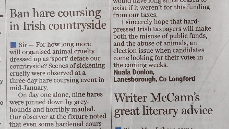 "For how long more will organised animal cruelty dressed up as ‘sport’ deface our countryside?". Read John Fitzgerald's Letter to the Editor in today's Sunday Independent...