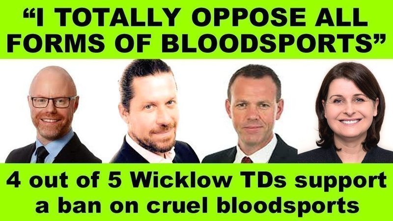 Four out of the five recently elected TDs in the Wicklow constituency are in favour of a ban on cruel bloodsports, ICABS can reveal.
