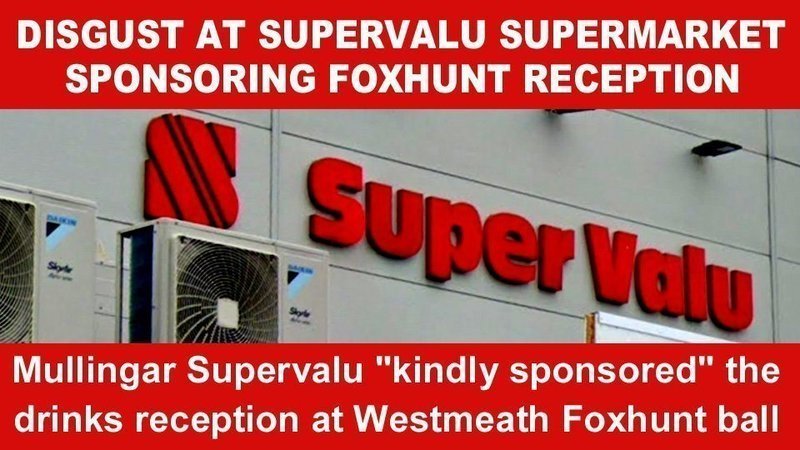In an appeal to Supervalu to act to stop its stores supporting foxhunt events, we pointed out that locals are now boycotting Buckleys Supervalu due to its sponsorship of the hunt's drinks reception and that people around the country are continuing to boycott other Supervalu stores due to their past sponsorship of greyhound racing.