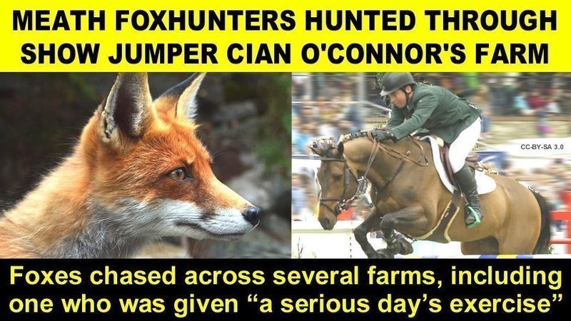 A report in the Irish Field reveals that the shameful Meath Foxhounds hunt, which saw several foxes being terrorised over the course of the day, took in show jumper's O'Connor's land.