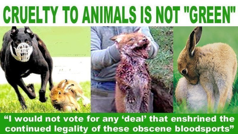I voted Green…but deliberate and organised cruelty to animals posing as "sport" is not Green to my way of thinking. I didn't vote to allow hare coursing or fox hunting to continue. Nor would I vote for any "deal" that enshrined the continued legality of these obscenities.