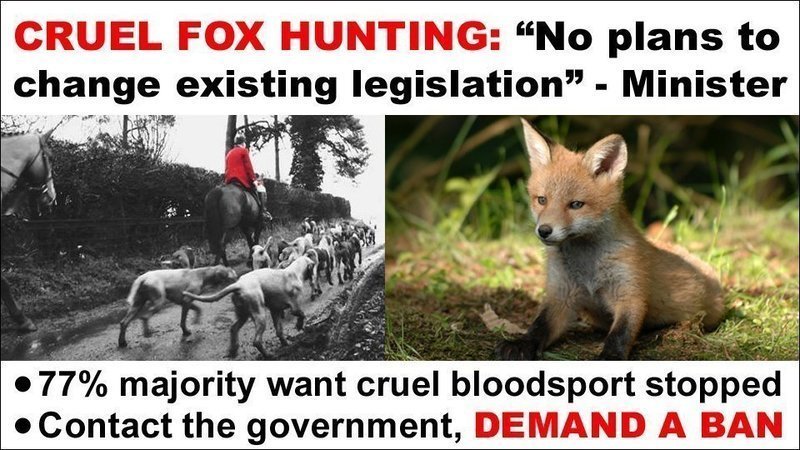 The only thing that will achieve that is a complete ban. Foxhunting, already long outlawed in England, Scotland and Wales - is inherently CRUEL. Foxes are disturbed from their habitats and chased across the countryside by hunters and their packs of hounds. When exhaustion slows the foxes down, the hounds catch them, knock them off their feet, bite into their flesh, disembowel them and rip them apart. Foxes who attempt to find refuge underground in a drain or earth are mercilessly dug out and killed - often after being cornered and attacked by hunt terriers.