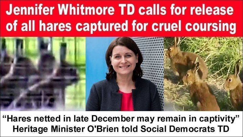 Social Democrats TD, Jennifer Whitmore (Wicklow) has today called on Heritage Minister Darragh O’Brien to act to ensure that all hares captured for cruel hare coursing are released back to the wild.