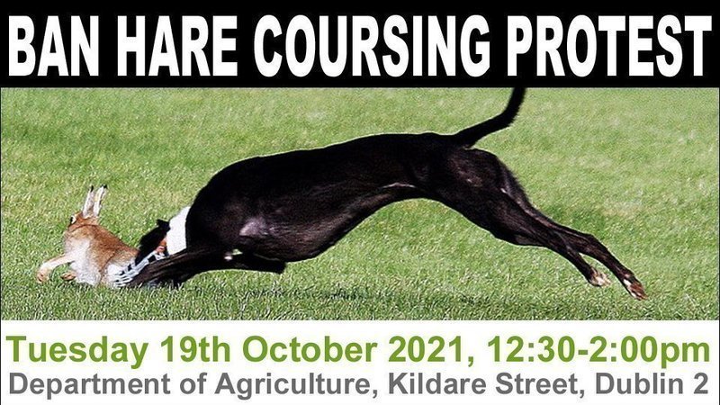 Please support the National Animal Rights Association’s "Ban Hare Coursing" protest tomorrow Tuesday 19th October 2021, 12:30pm - 2:00pm at the Department of Agriculture, Kildare Street, Dublin 2.