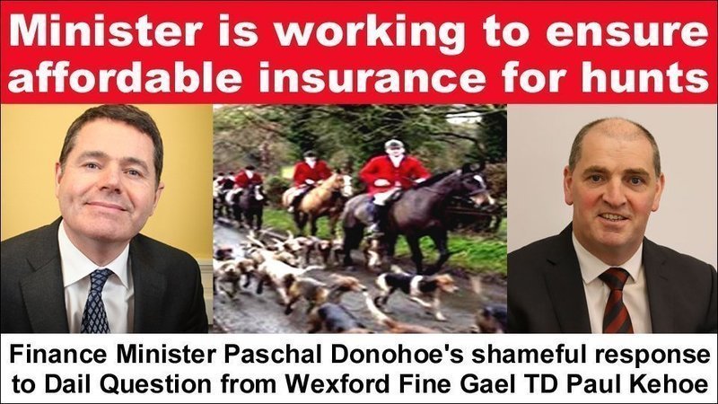 Minister Donohoe (Dublin Central) was responding to a Dail Question from pro-bloodsports TD Paul Kehoe (Wexford) who asked about "measures that are being undertaken to ensure access to affordable insurance for hunts"