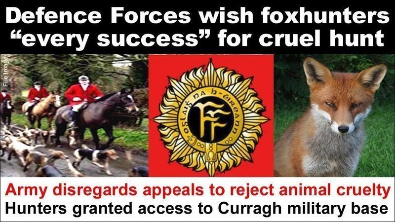 The Irish Army and the Department of Defence has again shamefully granted permission to foxhunters to hold a hunt at The Curragh military base in County Kildare.
