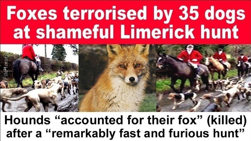 Foxes were terrorised and killed by a pack of 35 dogs during a shameful “fast and furious hunt” in Limerick.