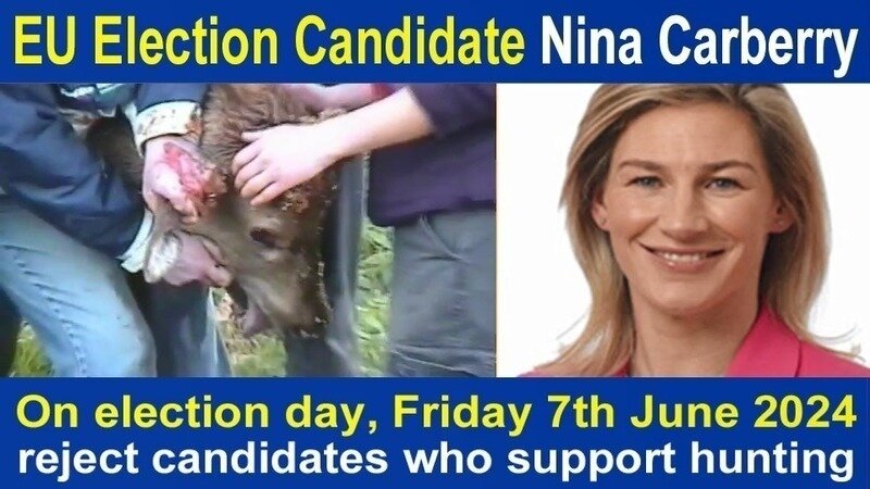 European Election candidate and former jockey Nina Carberry (Fine Gael – Midlands North West): It emerged in 2010 that she was an "active member" of the cruel Ward Union deer hunt. Described as a "progeny" of the hunt, she was "very upset" at the government's support for a ban on deer hunting. She attended a rally in support the hunt. Find out more below. On election day, Friday 7th June, please reject candidates who support hunting or other bloodsports...