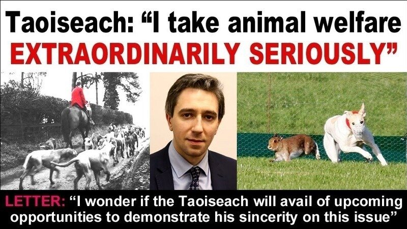 Taoiseach Simon Harris has claimed “I take animal welfare extraordinarily seriously”. He is the leader of a government which has allowed some of Ireland's worst acts of animal cruelty to continue, including fox hunting, hare coursing, etc. Will Deputy Harris "avail of upcoming opportunities to demonstrate his sincerity on this issue". Read John Fitzgerald's letter to the editor and please scroll down for action alert...