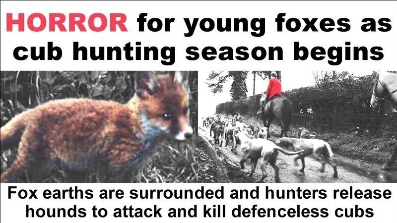This merciless brutality is carried out ahead of the upcoming fox hunting season to introduce new hounds to the taste of fox blood. It also serves to disperse foxes – the parents and siblings of targeted cubs are scattered so that their wider distribution will later provide a bigger hunting area.