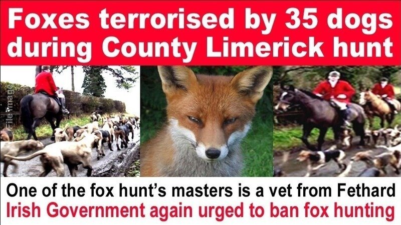 Foxes were terrorised by a pack of 35 dogs during a shameful in Limerick.