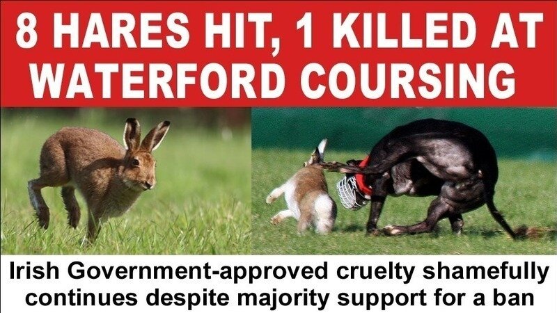 8 hares were hit by dogs, 2 were pinned to the ground and 1 was killed at a shameful coursing meeting in Waterford, newly released documents reveal.