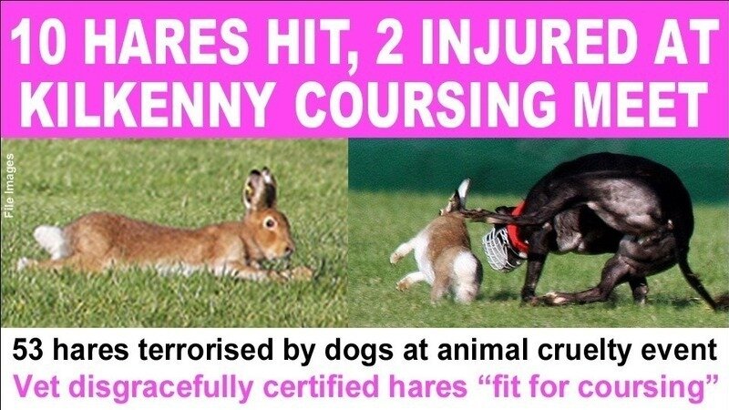 10 hares were hit and 2 suffered injuries after they were pinned to the ground at a shameful coursing meeting in Kilkenny, newly released documents reveal.