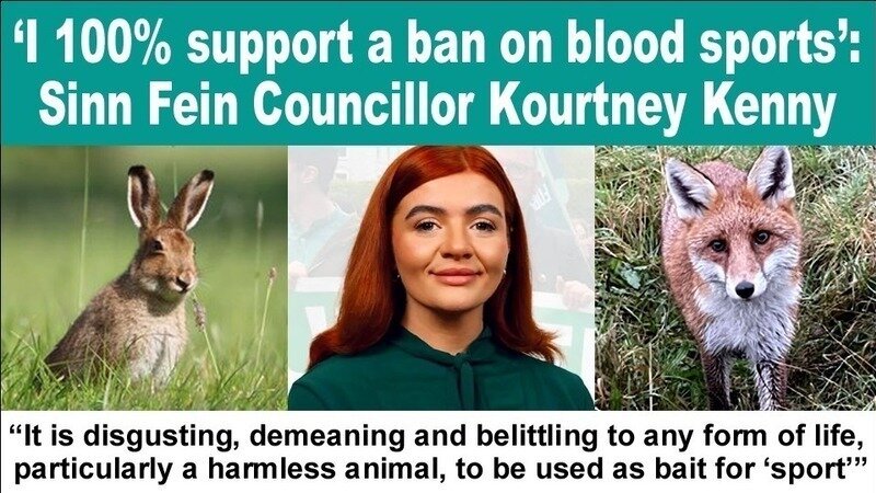 In a message to ICABS this month, Cllr Kourtney Kenny (Sinn Fein) stated: “I would 100% support a ban on any and all blood sports.”
