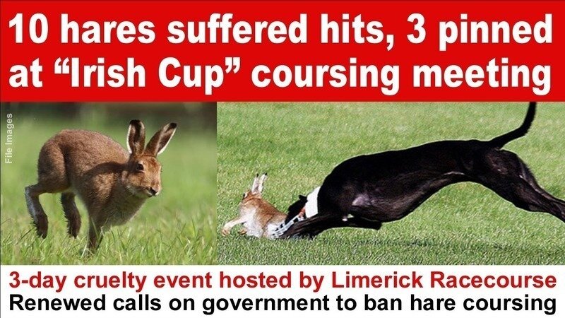 10 hares suffered hits and 3 were pinned to the ground by dogs at the “Irish Cup” hare coursing meeting in February, newly released documents reveal.