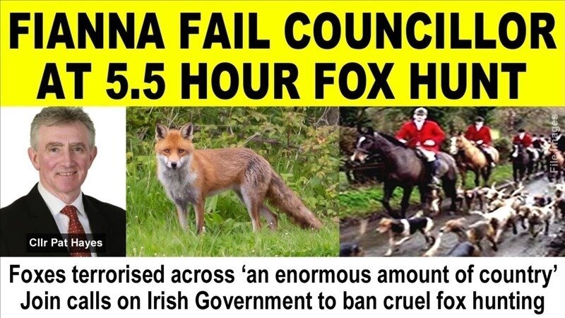 A Fianna Fail councillor was among those who shamefully participated in a five and a half hour hunt during which foxes were forced to run for their lives across “an enormous amount of country” in County Cork.